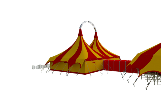 Chapiteau 2 mâts 3D avec intérieur + remorque de transport